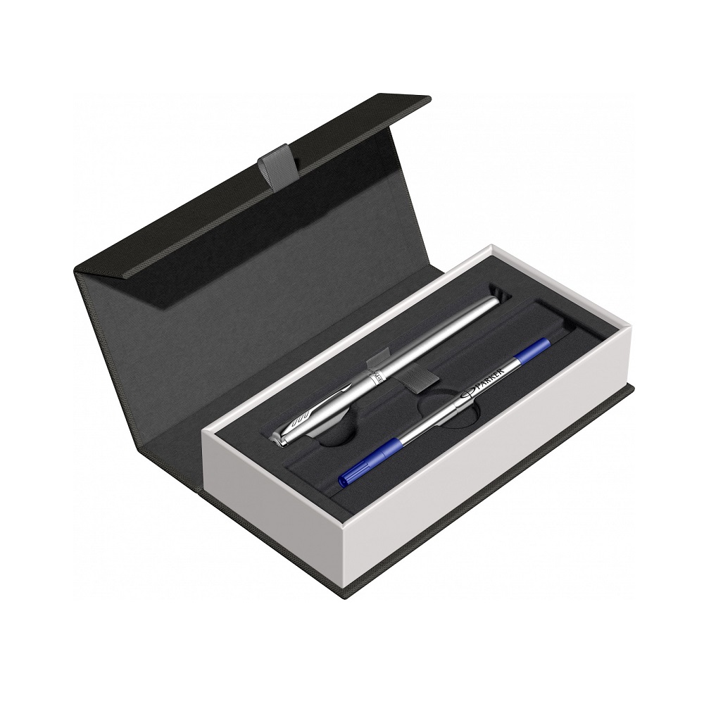 Roler olovka sadrži originalni Parker refil (minu) u crnoj boji.